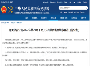 此外,2月23日海关总署发布公告,允许俄罗斯全境小麦进口。公告显示,允许在俄罗斯联邦境内且未发生小麦矮腥黑穗病的地区种植的,仅限于加工用途的春小麦进口。