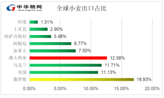 近年来乌克兰全球谷物出口国的排名大幅上升,跻身全球第三大小麦出口国,占到全球小麦出口的12%,预计今年将出口国内小麦产量的四分之三以上。