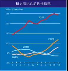 2021年全年,粮农组织谷物价格指数平均为131.2点,比2020年上升27.2%,达到自2012年以来的年度最高平均值。