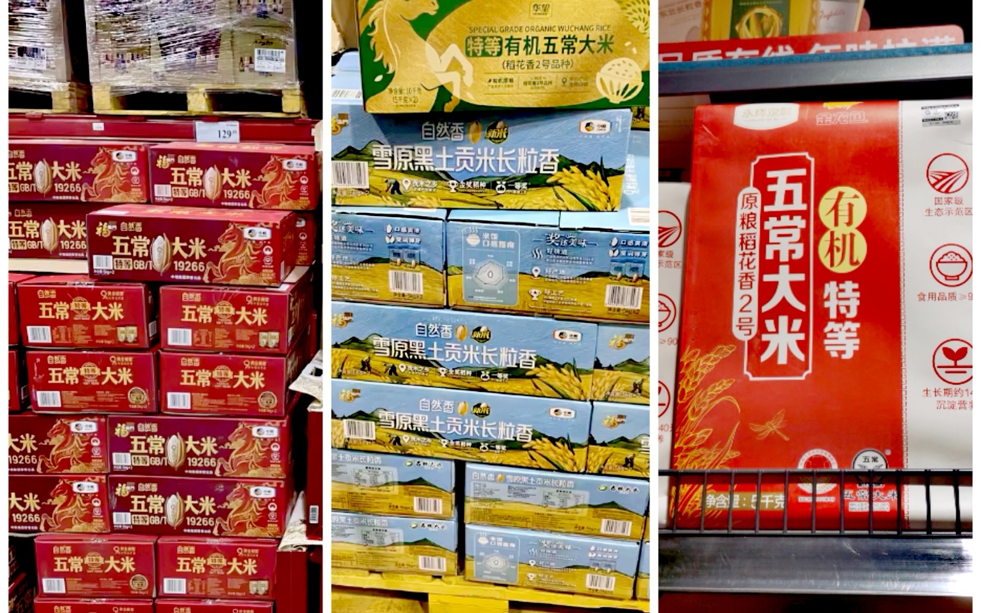 商超在售的有机、地域特色大米产品。