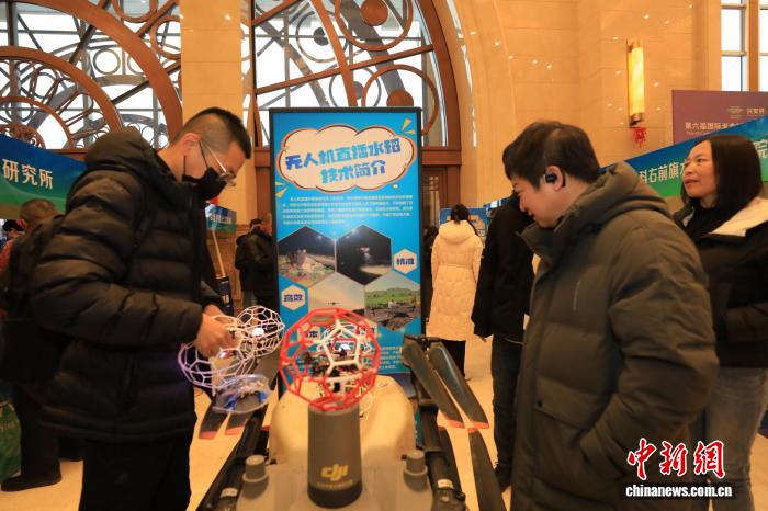 12月15日,内蒙古兴安盟,无人机直播水稻技术亮相兴安盟大米文化周。 王永生 摄