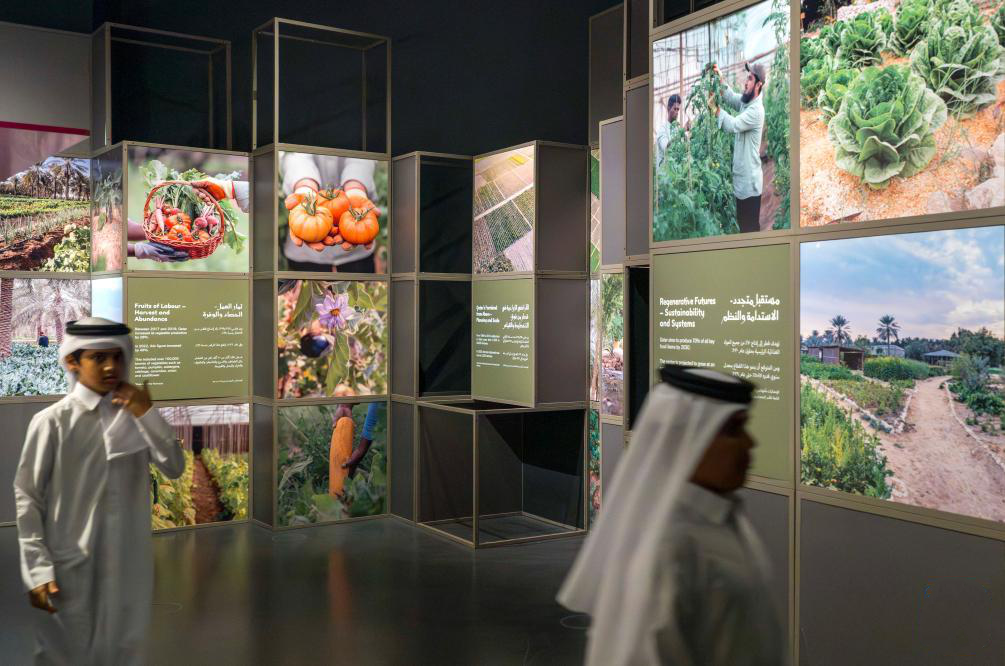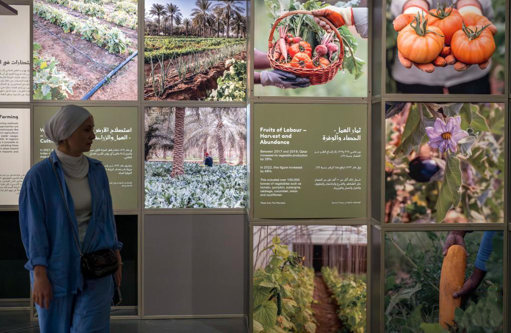 危机之下,卡塔尔一方面迅速拓展新的进口来源,扩大粮食战略储备,另一方面加快推进本土农业建设,沙漠农场、奶牛养殖基地等原本看似难以实现的设想,逐步落地成为现实。本次展览中提及的埃纳特·萨勒玛农场正是这一转型的体现。这处位于多哈郊区的综合农场如今不仅是粮食生产基地,也已成为教育、体验和社区参与的重要平台。