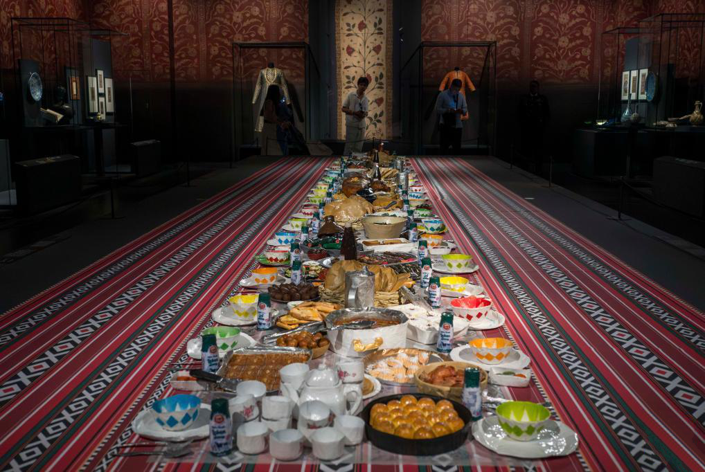 盛夏时节,走进位于卡塔尔首都多哈的伊斯兰艺术博物馆,一场关于饮食文化的展览正在举行。展厅内,来自中东和其他地区、不同时代的饮食器具陈列其间,香料气息萦绕。