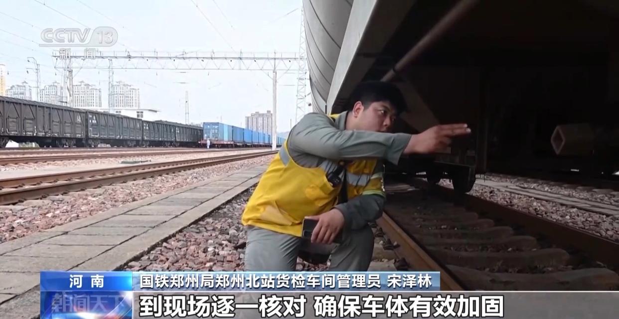国铁郑州局郑州北站货检车间管理员 宋泽林:对列车车顶等部位进行全面检查,防止顶棚出现破损,到现场逐一核对,确保车体有效加固。