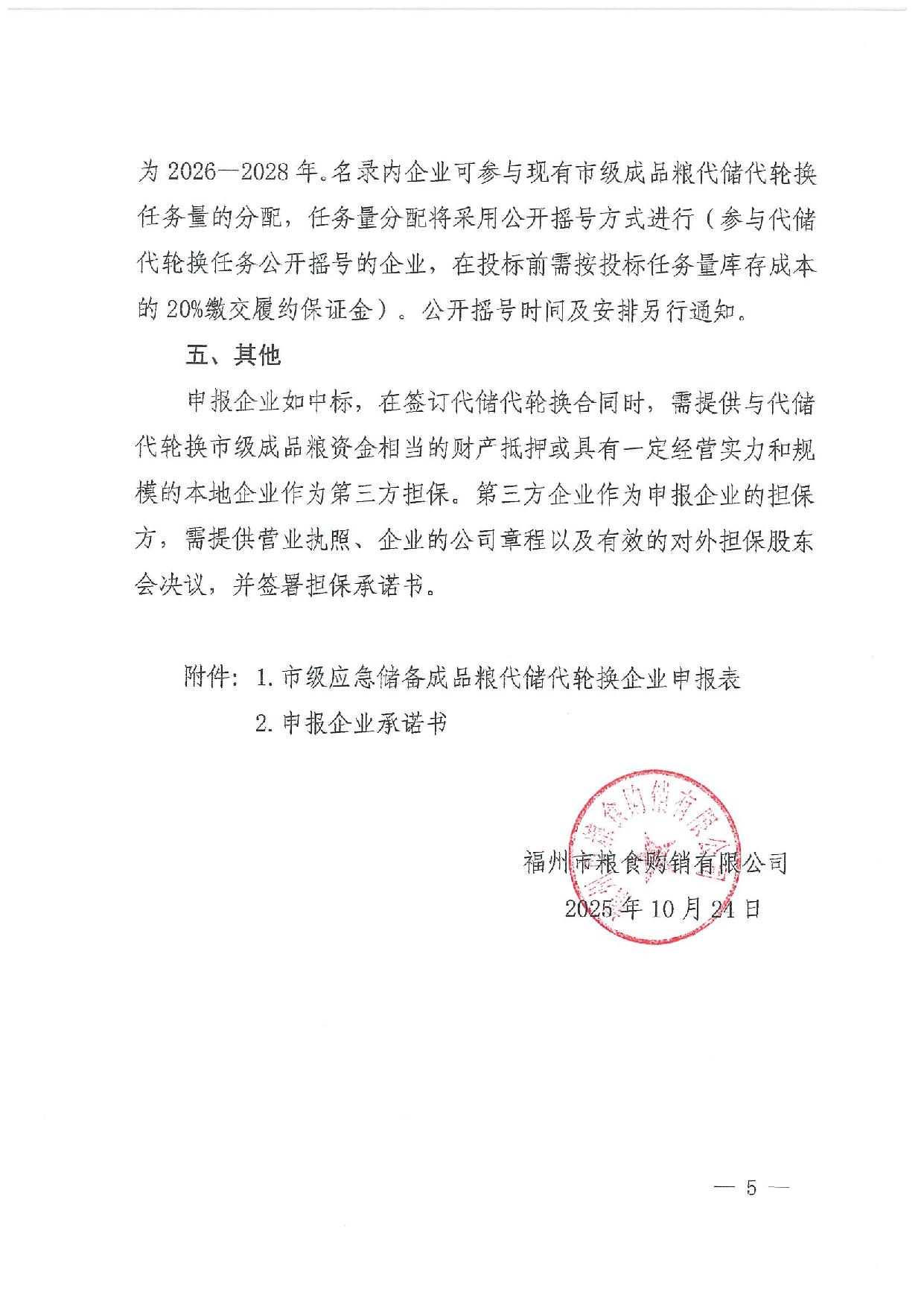 福州市粮食购销有限公司关于2026-2028年度福州市市级应急储备成品粮代储代轮换企业遴选的公告