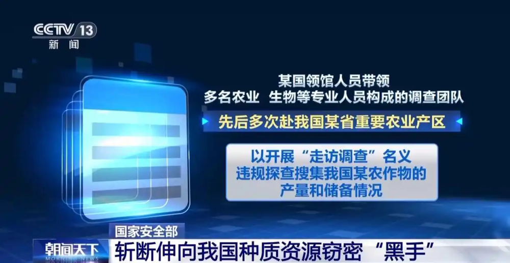 根据国家安全机关披露,近年来,境外间谍情报机关持续加大对我国粮食领域的渗透力度,一些境外机构以“学术合作”“种质交流”“市场调研”等为幌子,暗中非法搜集我国核心种质资源基因数据等关键信息,对我国种业核心竞争力与粮食安全造成严重威胁。