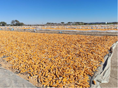 新疆昌吉回族自治州奇台县晾晒场上等待脱粒交售的玉米。新华社记者苟立锋 摄