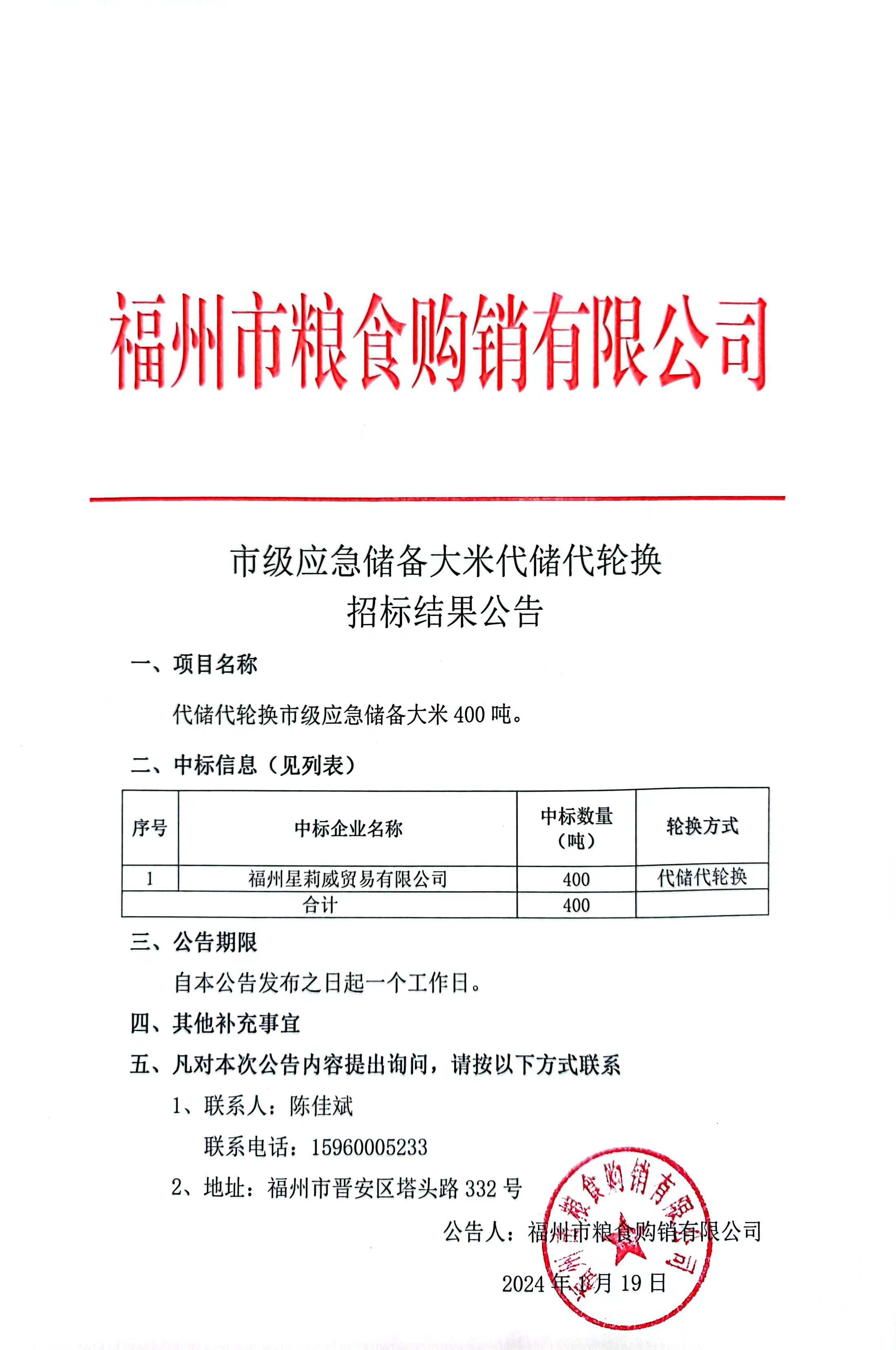 福州市粮食购销有限公告市级应急储备大米代储代轮换招标结果公告