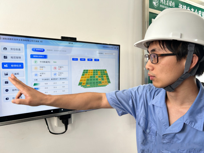 低温技术能让粮食储存时间更长、品质更好。进入湖南湘粮生态农业发展有限公司的粮库内,凉意扑面而来。“冬季蓄冷、夏季释冷,仓温常年低于20℃。”工作人员指向粮堆中密布的测温线,“如果粮温波动异常,系统会自动报警。”