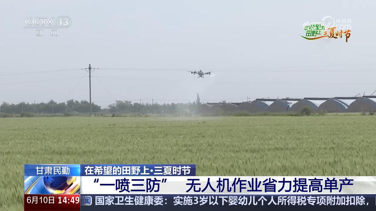 甘肃武威市民勤县正值小麦产量形成的关键时期,当地抢抓农时,全面开展小麦“一喷三防”作业,以科技力量护航夏粮丰产丰收。