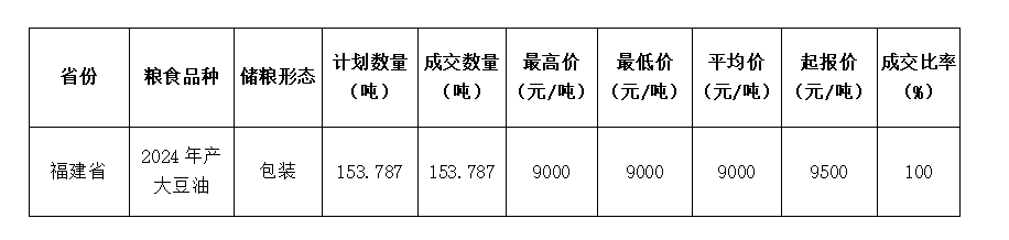 2024年2月1日福建省漳州市诏安县应急储备油竞价采购交易会成交结果