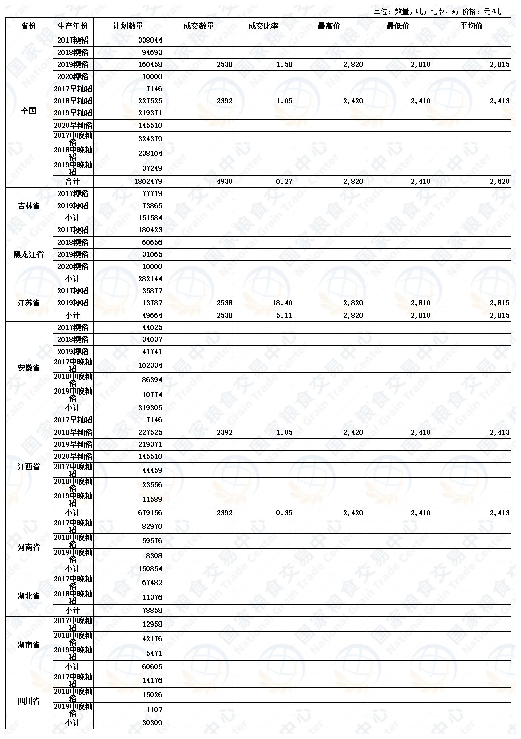 9月3日最低收购价稻谷(2017-2020年)交易结果