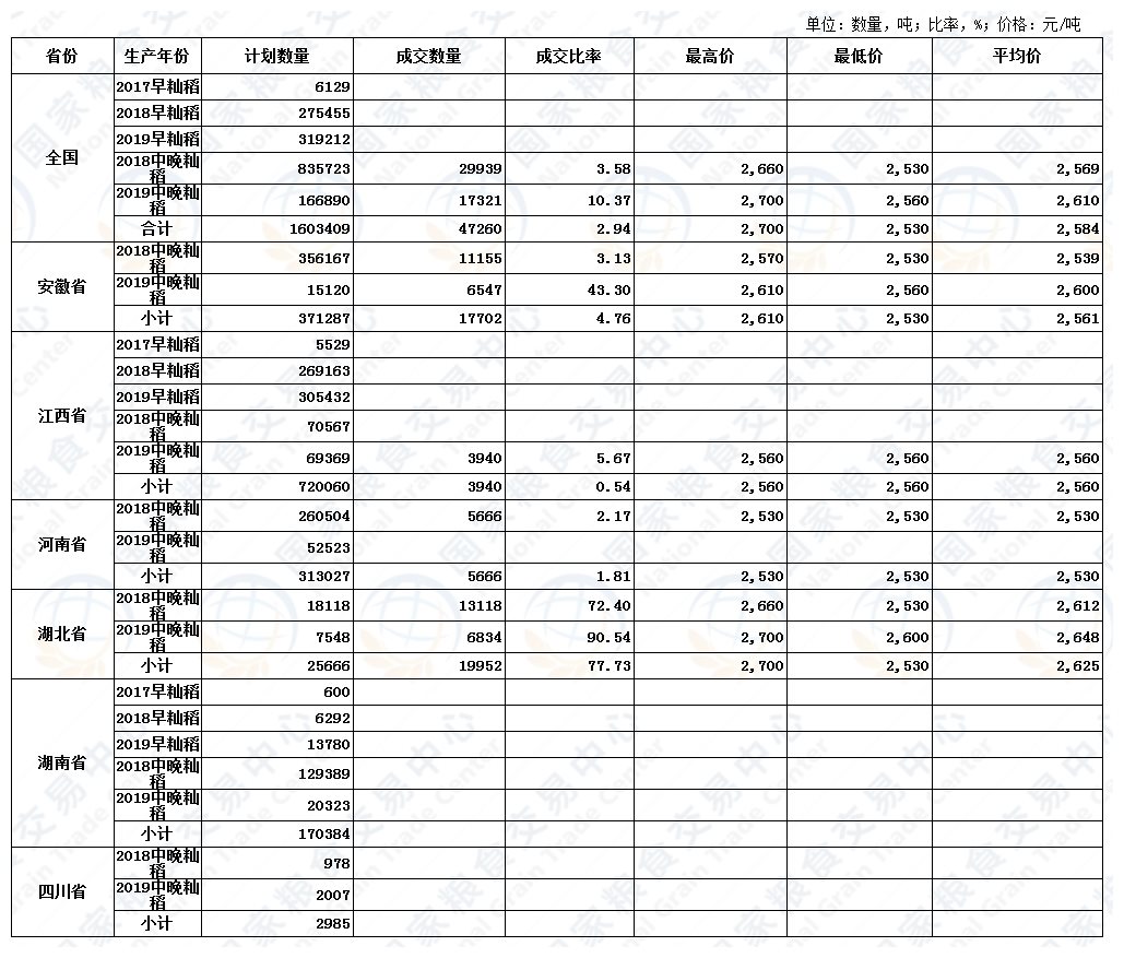 4月16日最低收购价稻谷(2017-2019年)交易结果