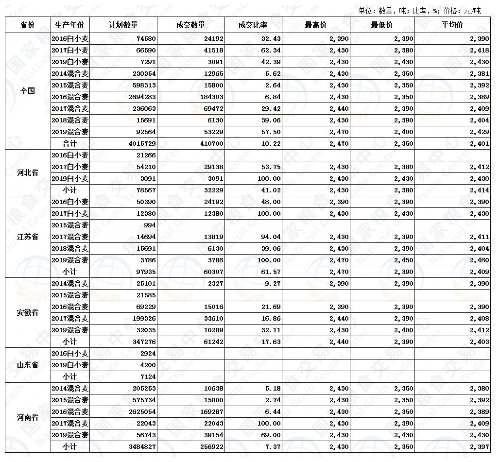 4月14日最低收购价小麦交易结果
