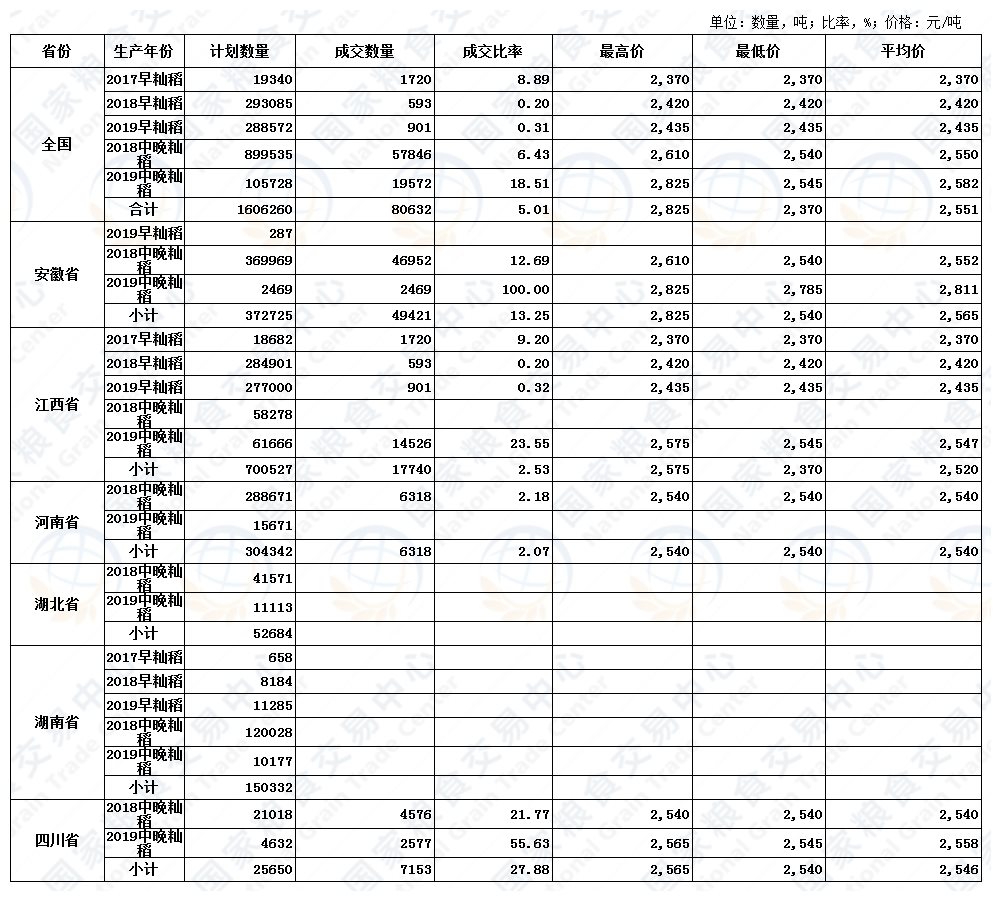 3月26日最低收购价稻谷(2017-2019年)交易结果
