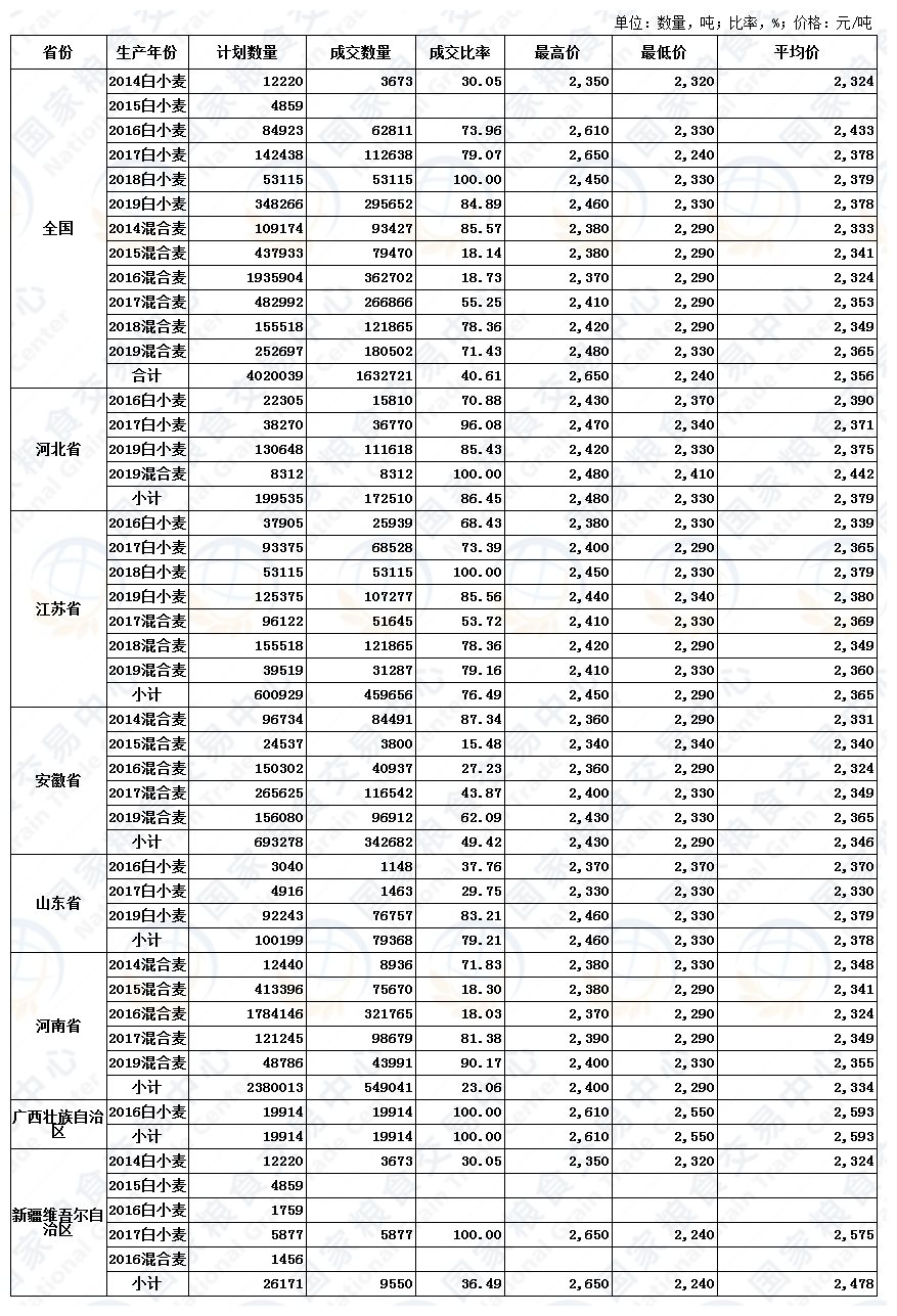 3月16-17日最低收购价小麦、新疆临储小麦交易结果