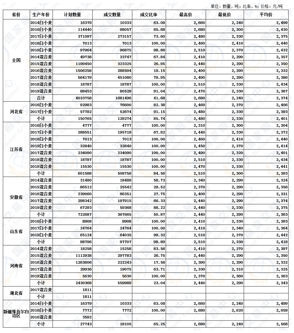 2月23-24日最低收购价小麦、新疆临储小麦交易结果