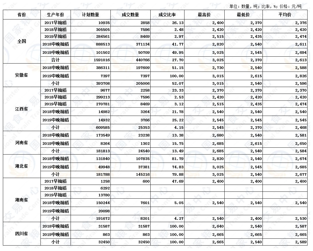 2月10日最低收购价稻谷(2017-2019年)交易结果