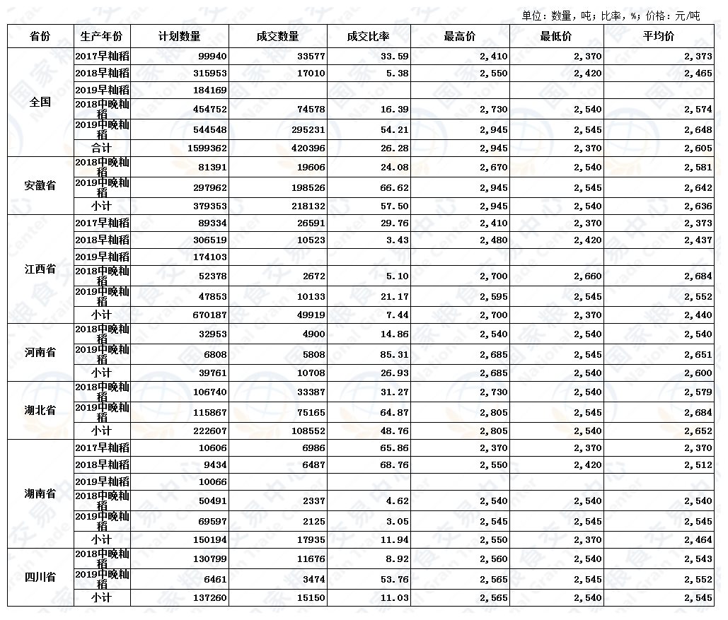 12月29日最低收购价稻谷(2017-2019年)交易结果