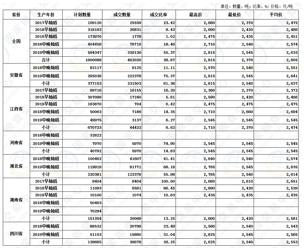 12月25日最低收购价稻谷(2017-2019年)交易结果