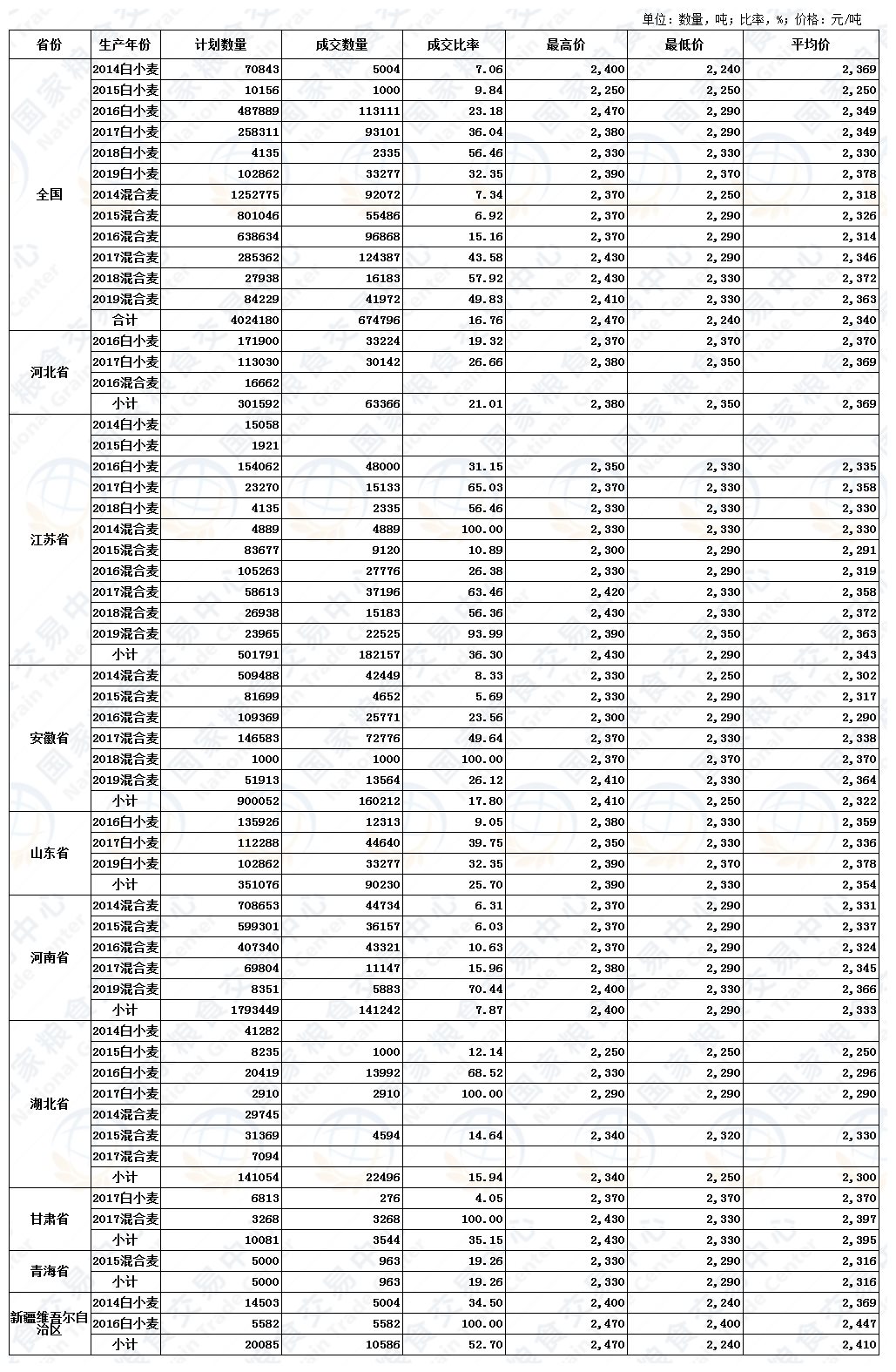 11月25日最低收购价小麦、新疆临储小麦交易结果