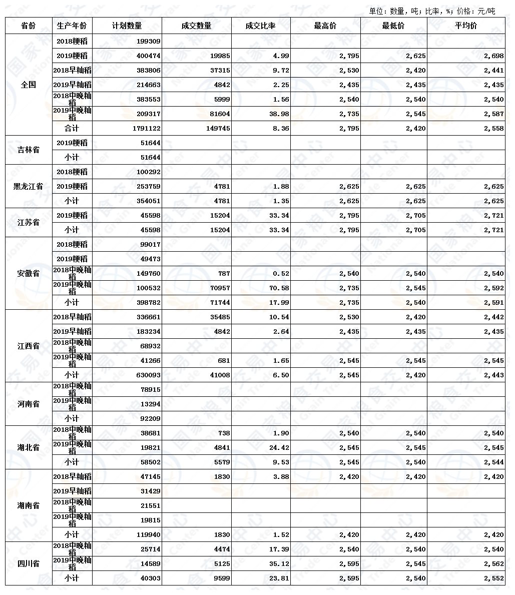 9月18日最低收购价稻谷(2018-2019年)交易结果