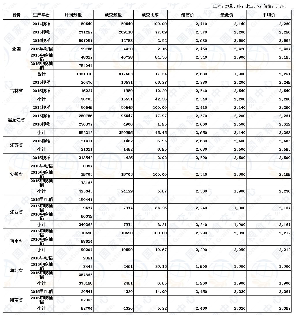 7月7日最低收购价稻谷(2014-2016年)交易结果