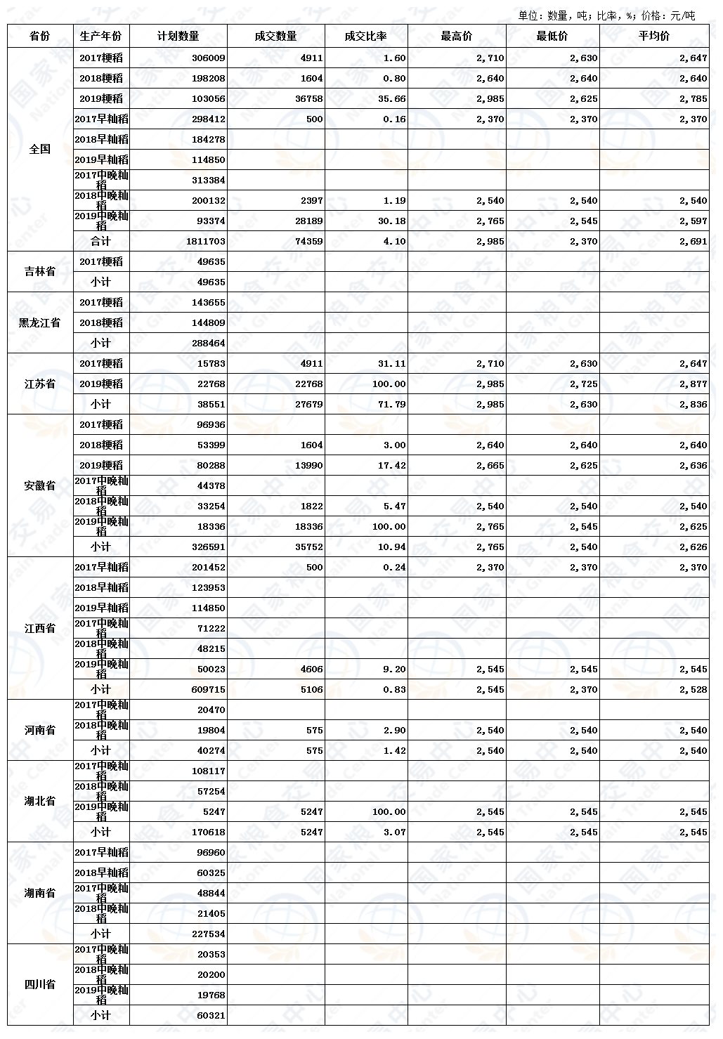 7月3日最低收购价稻谷(2017-2019年)交易结果