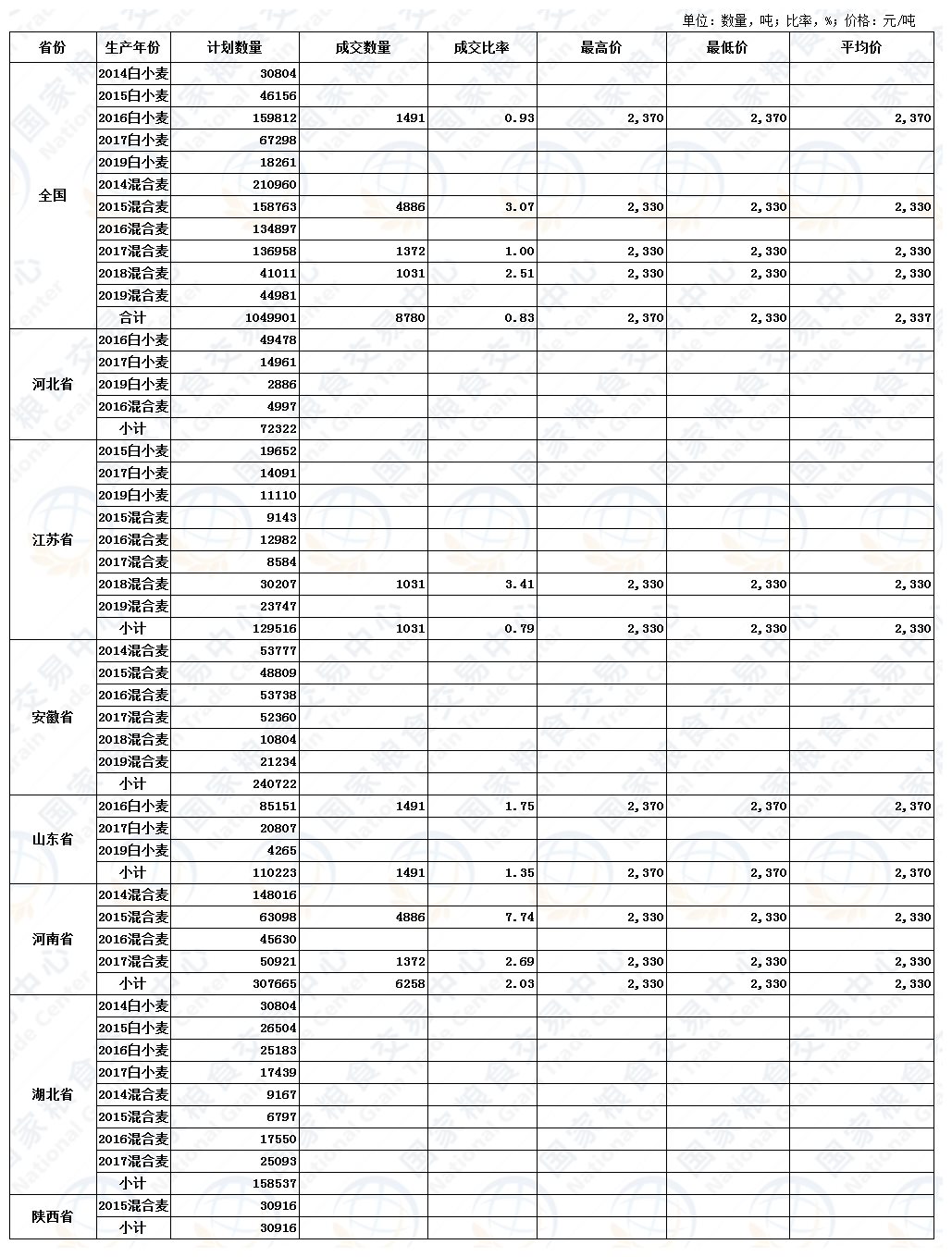 7月1日最低收购价小麦、跨省移库小麦竞价交易结果