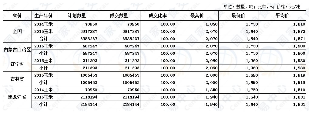 6月24日国家临时存储玉米交易结果