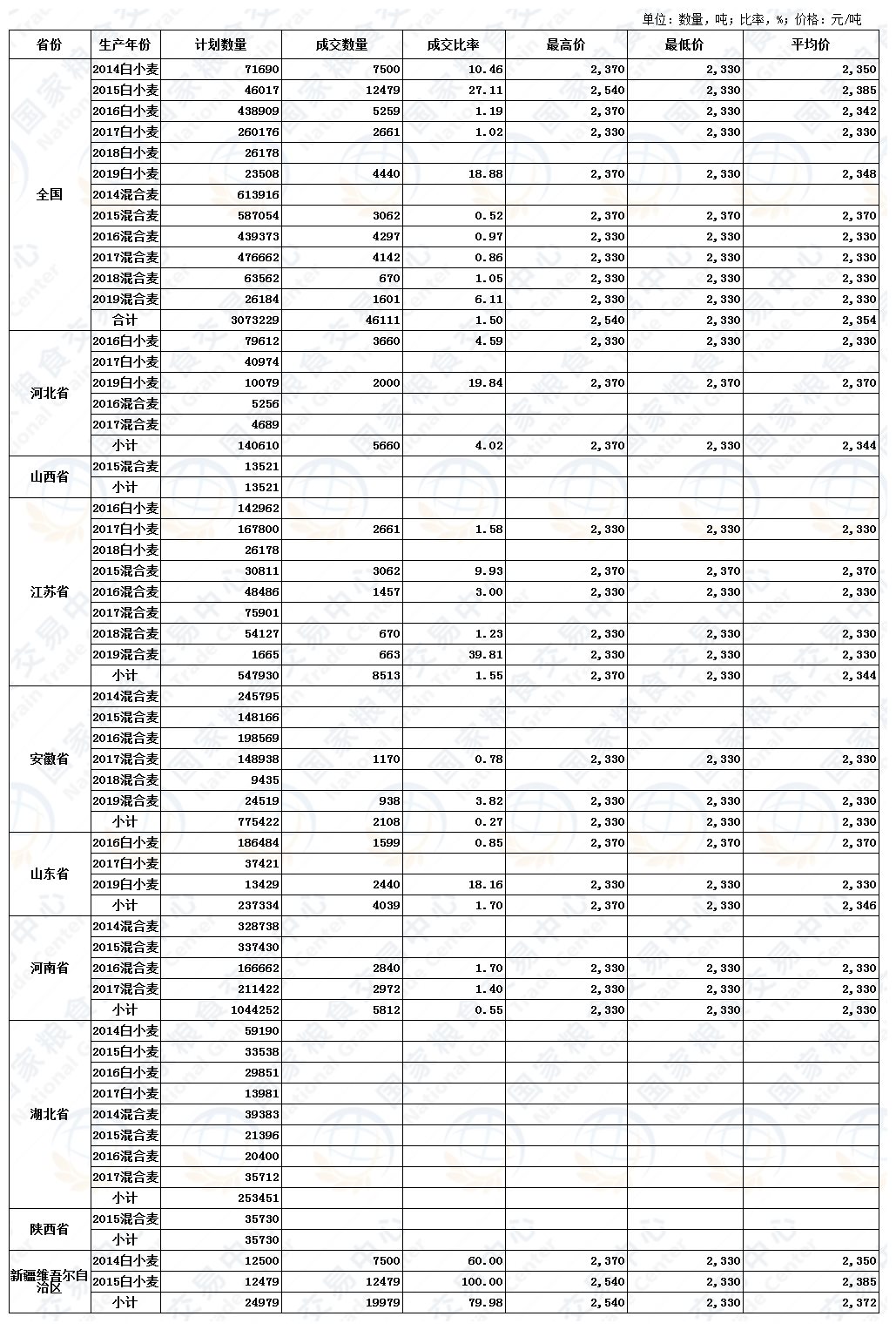 6月10日最低收购价、国家临时存储、跨省移库小麦竞价交易结果