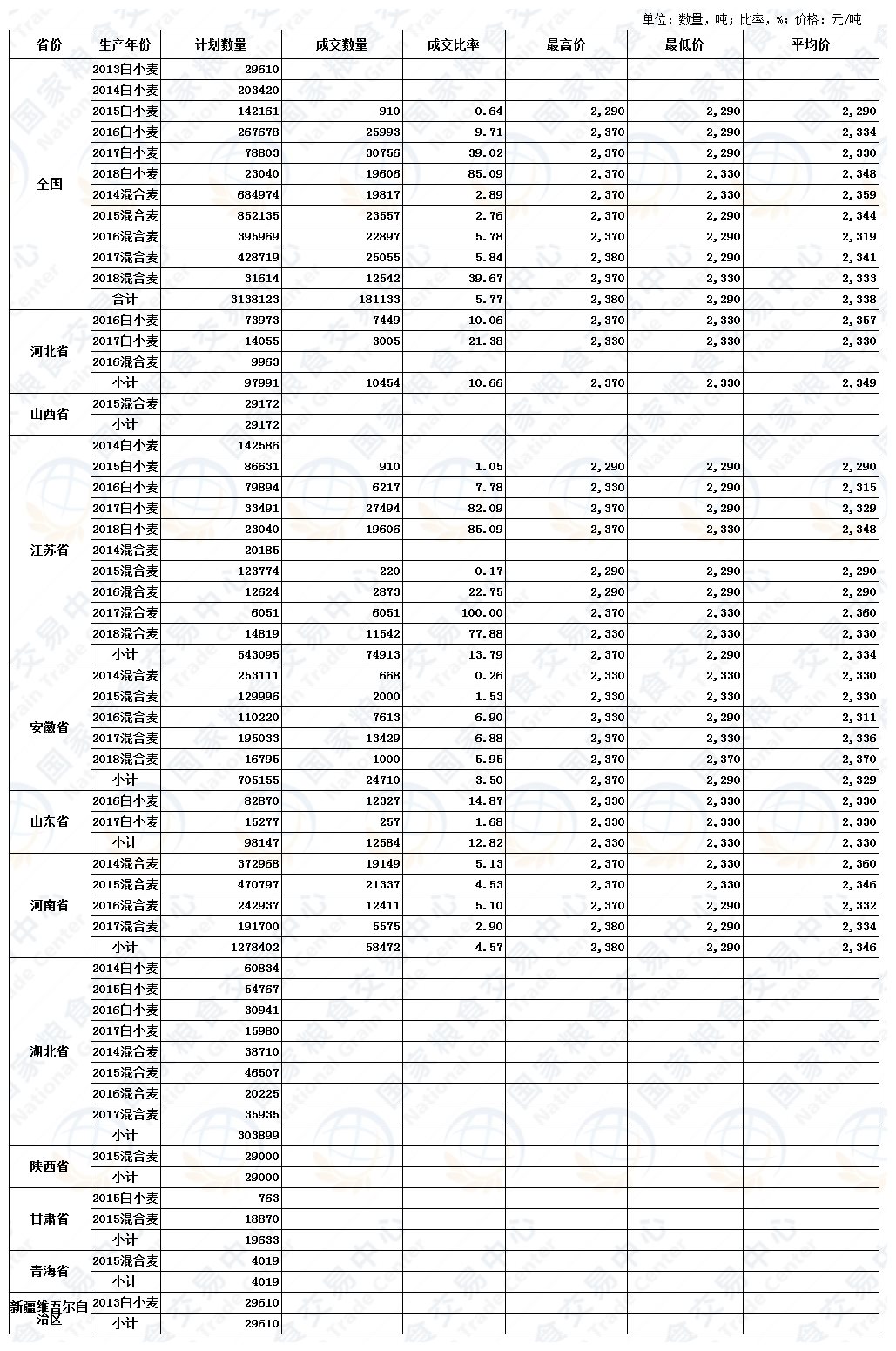4月1日最低收购价、国家临时存储、跨省移库小麦交易结果