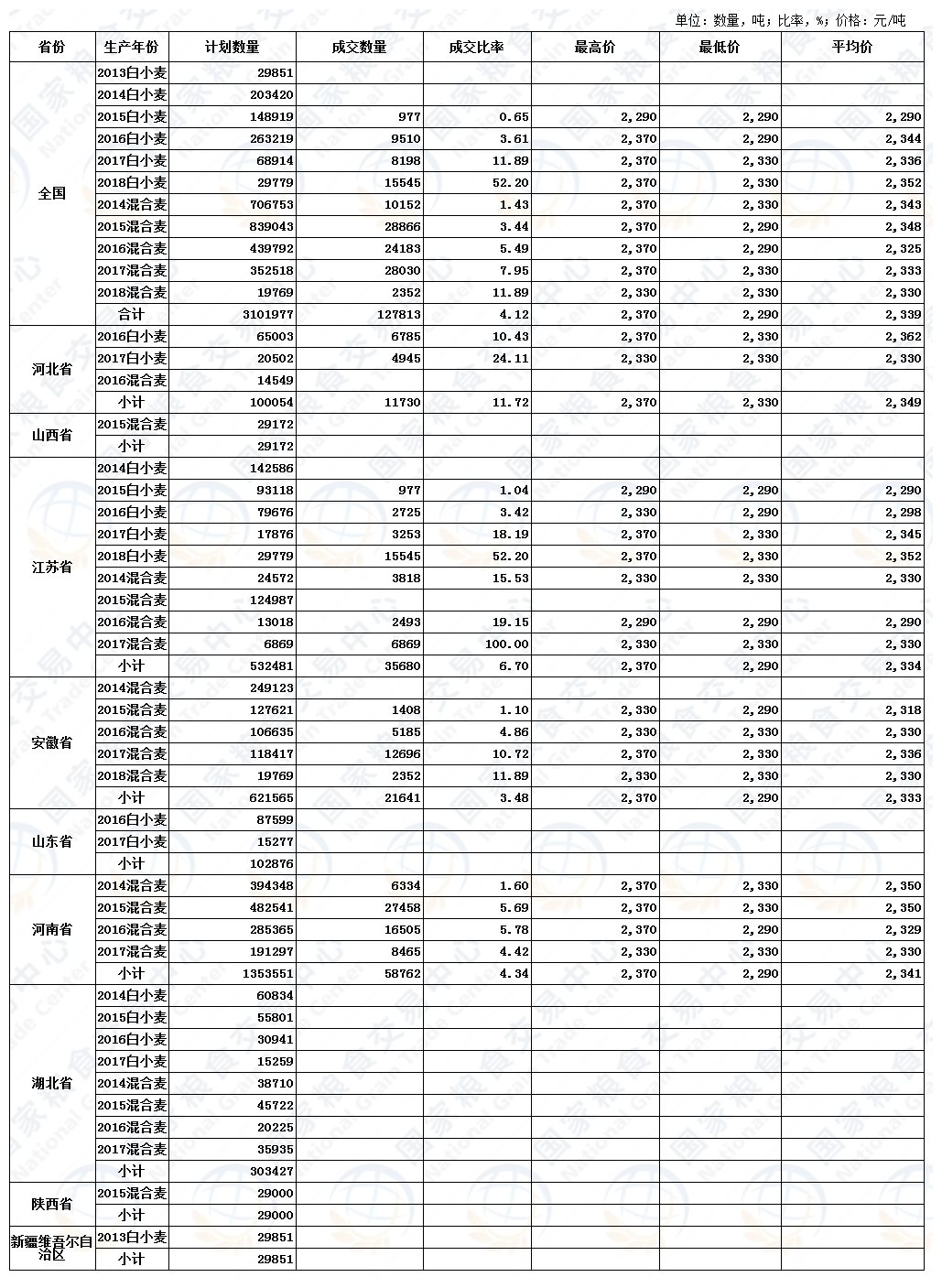 3月18日最低收购价和国家临时存储小麦竞价交易结果