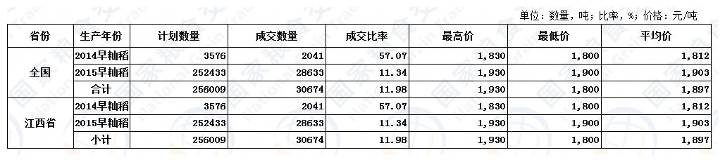 2月21日最低收购价稻谷(2014-2015年)交易结果