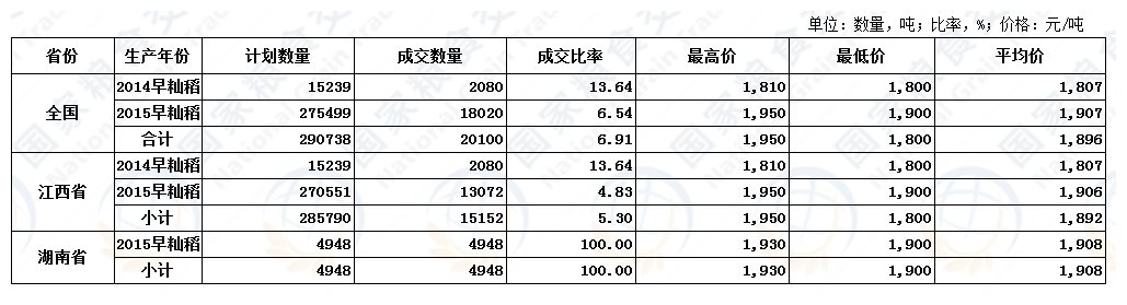 1月17日最低收购价稻谷(2014-2015年)交易结果