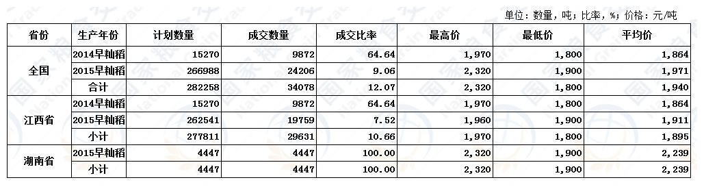 1月10日最低收购价稻谷(2014-2015年)竞价交易结果