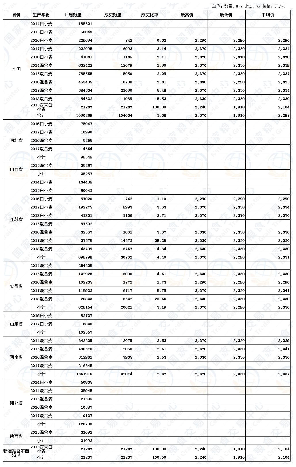 1月8日最低收购价、国家临储存储、跨省移库小麦竞价交易结果