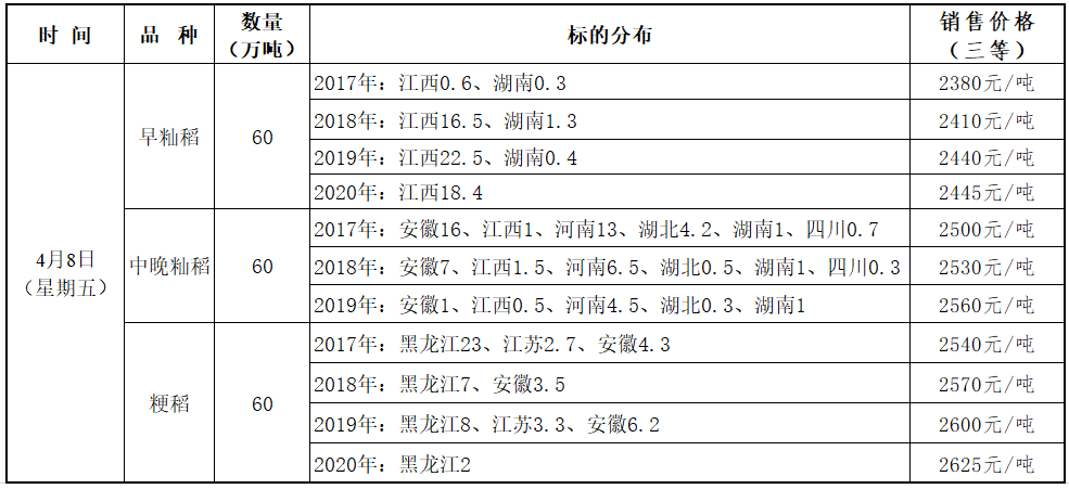 注:销售价格等级价差40元/吨;本交易安排为预公告,交易日的实际销售数量以国家粮食交易中心官网发布的交易清单为准。