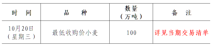 经国家有关部门研究决定,2021年10月20日在国家粮食和物资储备局粮食交易协调中心及联网的各省级粮食交易中心组织开展最低收购价小麦竞价交易,请交易会员通过国家粮食交易中心官网(www.grainmarket.com.cn)登录“国家粮食交易平台→我要买粮→参加竞价交易→国家政策性粮油竞价销售”参与交易。现就有关事项公告如下(重点提示内容详见加粗字体部分):