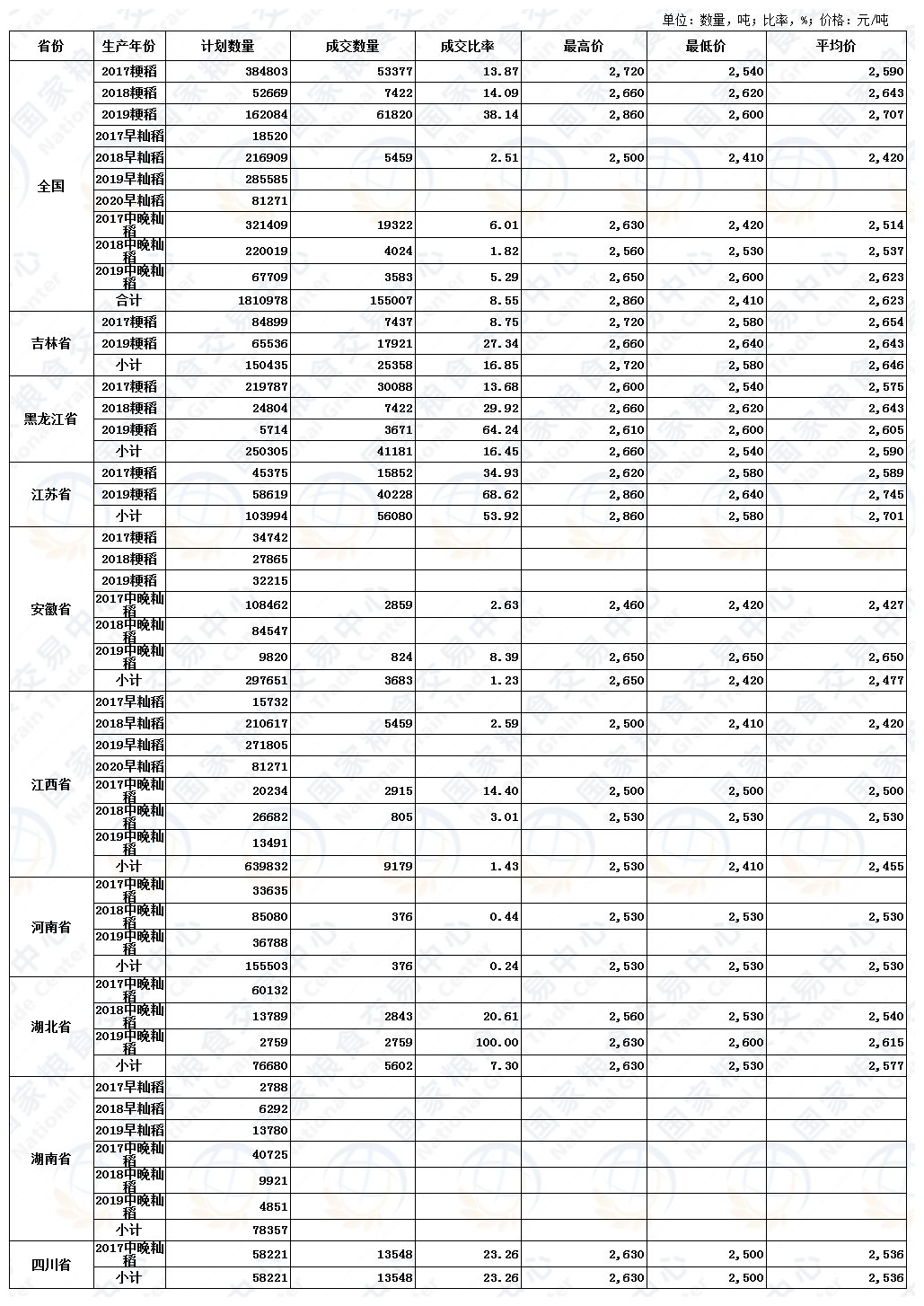 5月14日最低收购价稻谷(2017-2020年)交易结果