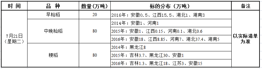 经国家有关部门研究决定,2020年7月21日在国家粮食和物资储备局粮食交易协调中心及联网的各省(区、市)国家粮食交易中心组织开展最低收购价稻谷竞价交易,请交易会员通过国家粮食交易中心官网(www.grainmarket.com.cn)登录“国家粮食交易平台→我要买粮→参加竞价交易→最低收购价稻谷竞价销售”参与交易。现就有关事项公告如下(重点提示内容详见加粗字体部分):
