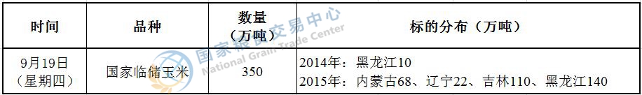 经国家有关部门研究决定,2019年9月19日在国家粮食和物资储备局粮食交易协调中心及联网的各省(区、市)国家粮食交易中心组织开展国家临储玉米竞价交易,请交易会员通过国家粮食交易中心官网(www.grainmarket.com.cn)登录“国家粮食电子交易平台→我要买粮→参加竞价交易→国家临储玉米竞价交易”参与交易。现就有关事项公告如下(重点提示内容详见加粗字体部分):