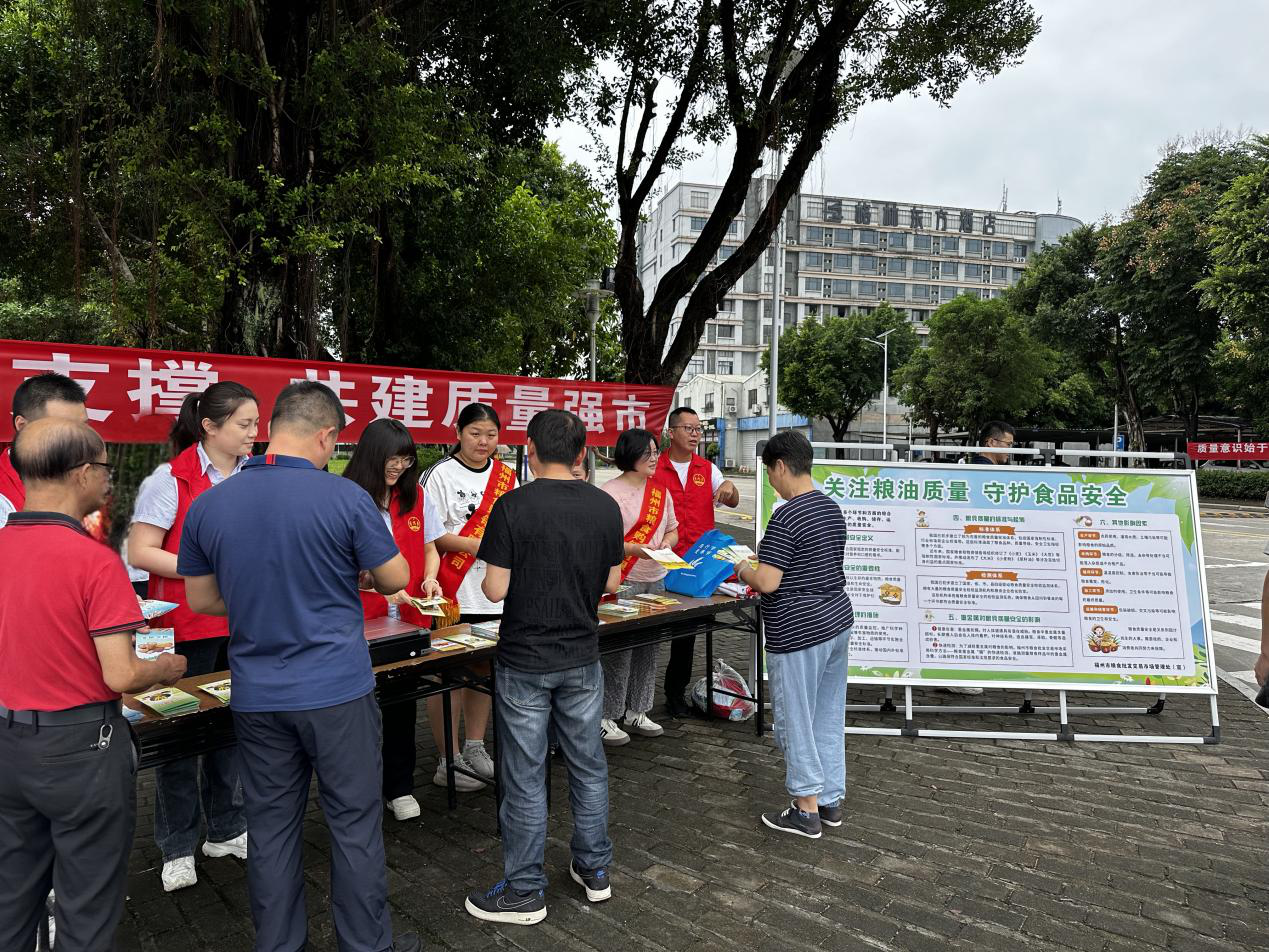 9月25日上午9点30分,福州市粮食交易批发市场组织市场内经营商户,在市场内榕树下共同举办2024年“质量月”宣传活动。