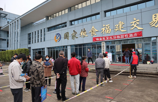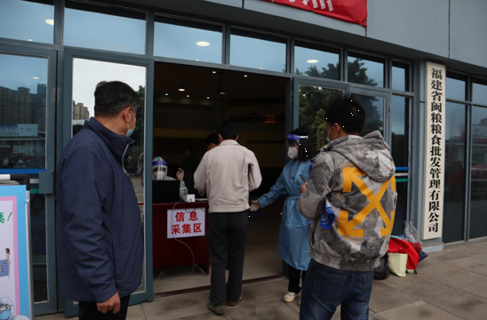 3月23日上午8点30分管理处联合闽侯县荆溪镇设立粮食批发市场采样点,对市场内的从业人员开展本月第二轮全员核酸检测工作。