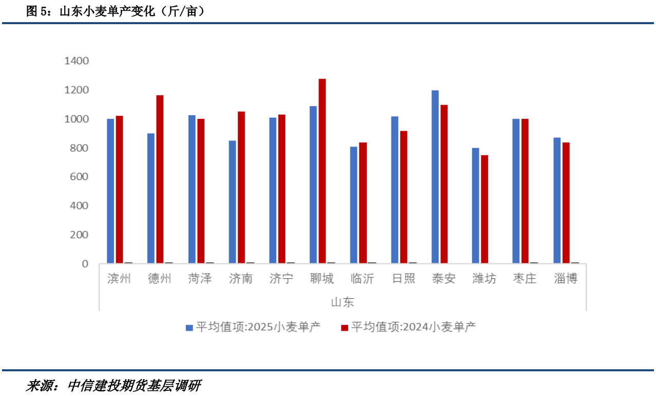 鲁东如淄博、滨州平产略增,人工和天然降水增加是增产的主要原因。但是并非所有区域都是越浇越长,区域浇地后容易倒伏,损耗增加,且浇水和增产幅度之间也存在经济账:浇水一次一般20-35元/亩,而单产增幅一般在100-300斤不等,如果按照当前1.16-1.18元/斤的价格来计算,如果浇3次之后只能收获100斤的增幅,收益就比较有限,所以并没有出现为了增产加倍浇水的情况。
