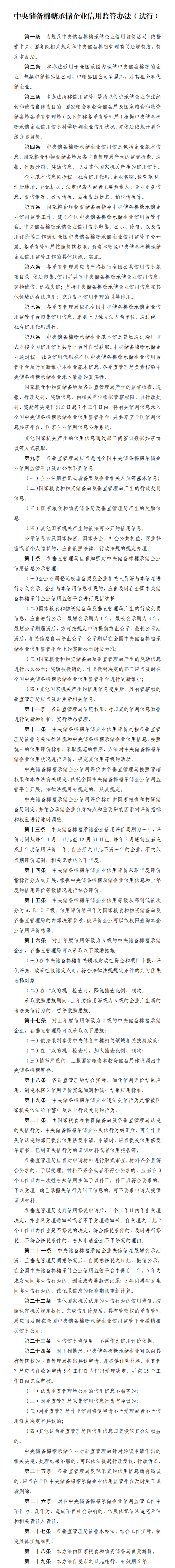 为认真贯彻落实党中央、国务院关于强化信用分级分类监管,实施守信联合激励和失信联合惩戒有关部署要求,推动建立中央储备棉糖信用监管机制,进一步规范承储企业管理,切实提高中央储备棉糖管理水平,国家粮食和物资储备局制定了《中央储备棉糖承储企业信用监管办法(试行)》。现印发给你们,请认真遵照执行。