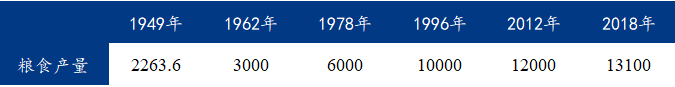 表1 建国以来粮食产量发展情况 单位:亿斤