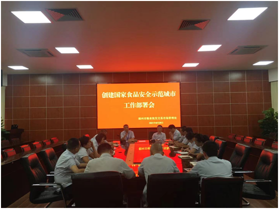 8月25日下午,福州市粮食批发交易市场开展 “创建国家食品安全示范城市”工作部署会议。市场管理处陈东总经理传达了近期市委、市政府及市粮储局关于食安城市创建迎检的重要意义及工作要求,并强调各部门要按照各自工作职责,做好全面自查自检,按时完成各项迎检准备工作,确保各项责任落实到位。