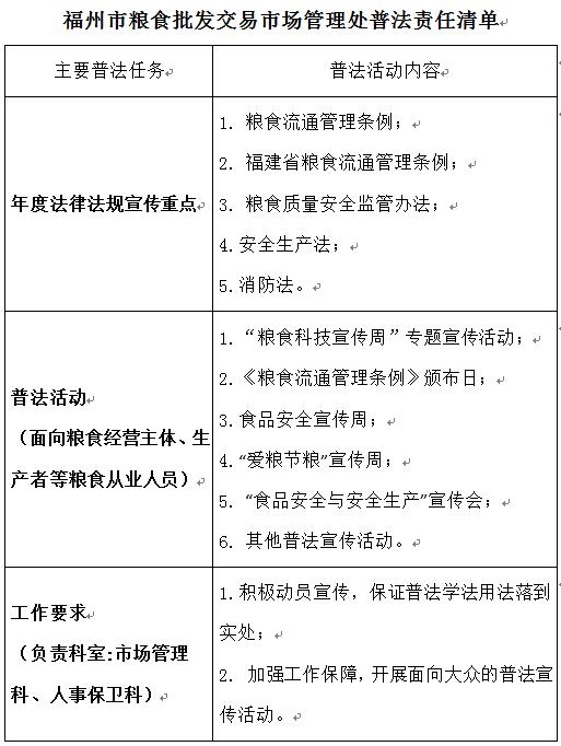 (一)深入学习宪法等法律法规。坚持把学习宣传宪法摆在首要位置,在全省粮食行业积极开展宪法教育,开展宪法及相关法律法规系列宣传活动,认真履行普法社会责任。及时学习新颁布、新修订的法律法规,引导粮食行业干部职工自觉守法、遇事找法、解决问题靠法。