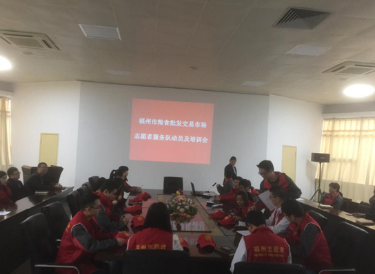 2017年4月11日上午9点30分,吴忠芳主任在二楼会议室主持召开福州粮食批发交易市场志愿者服务队培训会。